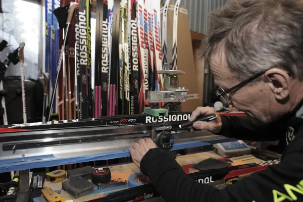 Pitokarvojen asennus asiakkaan omiin suksiin (pitoalueen pituusvaihtoehtoja 5 kpl).